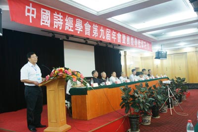 来自韩国、日本、马来西亚等国和香港、台湾地区及大陆的200余名专家学者参加了本次盛会。开幕式上,中国诗经学会会长、河北师范大学教授夏传才先生致开幕词。夏会长回顾了中国诗经学会自1991年获教育部批准筹办以来的发展历程,从推进《诗经》学术研究的繁荣、加强国际文化交流与合作、开发地方诗经文化资源三个方面总结了学会二十年来的工作,并对中国诗经学会在今后的发展方向提出了希望。河北省委统战部副部长刘青代表省委常委、统战部长刘永瑞出席大会并讲话,河北师范大学党委书记李建强教授代表河北师范大学致辞。韩国诗经学会会长宋昌基教授、日本宫城女子大学田中和夫教授(受日本诗经学会会长村山吉广教授委托)分别介绍了两国《诗经》研究的进展情况,并祝大会圆满成功。湖北房县县委书记张歌莺先生也在大会上发言祝贺。开幕式由河北师范大学副校长、中国诗经学会副会长兼秘书长王长华教授主持。