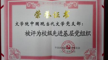 现当代文学支部近年来在教学和科研方面都举行了可喜的成绩,先后有郭宝亮、胡景敏、高艳芝、李惠敏等多名党员获得各级教学名师,李建周、王勇等获得校级先进工作者或优秀党员,郭宝亮、胡景敏、王勇、康鑫、李静等先后获得国家社科基金项目资助,先后出版著作10余部,发表核心期刊以上论文50余篇,参加国际和国内学术会议几十次,多人在国内学术团体任副会长、常务理事等职。此外,在学院的各项工作中,现当代文学支部也不甘人后,创优争先。2005年、2012年、2015年三次被评为校级先进基层党组织。