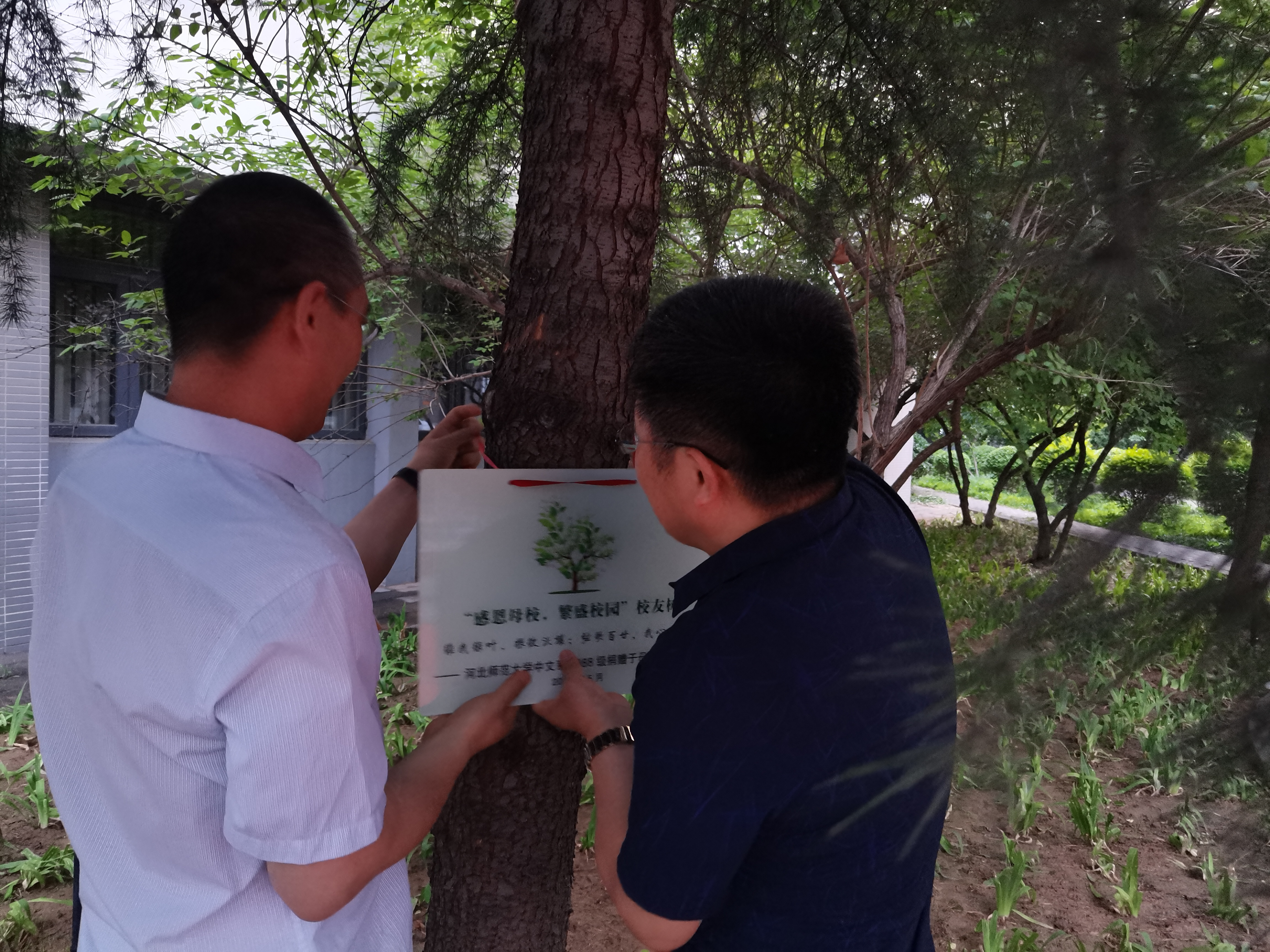 聚会前一天,为庆祝母校建校120周年,“感恩母校,繁盛校园”,88级同学集体认捐了校友树。在当天六合彩资料大全 举办的“校友林”认捐仪式上,学校党委常委、副校长刘英出席会议并为“校友林”揭牌,仪式后与88级校友代表王勇一起为认捐的雪松悬挂了印有“维我绿叶,根彼沃壤,弦歌百廿,我心永向”代表88级心声的校友树牌。聚会中播放了前一天集体认捐校友树的视频及图片。