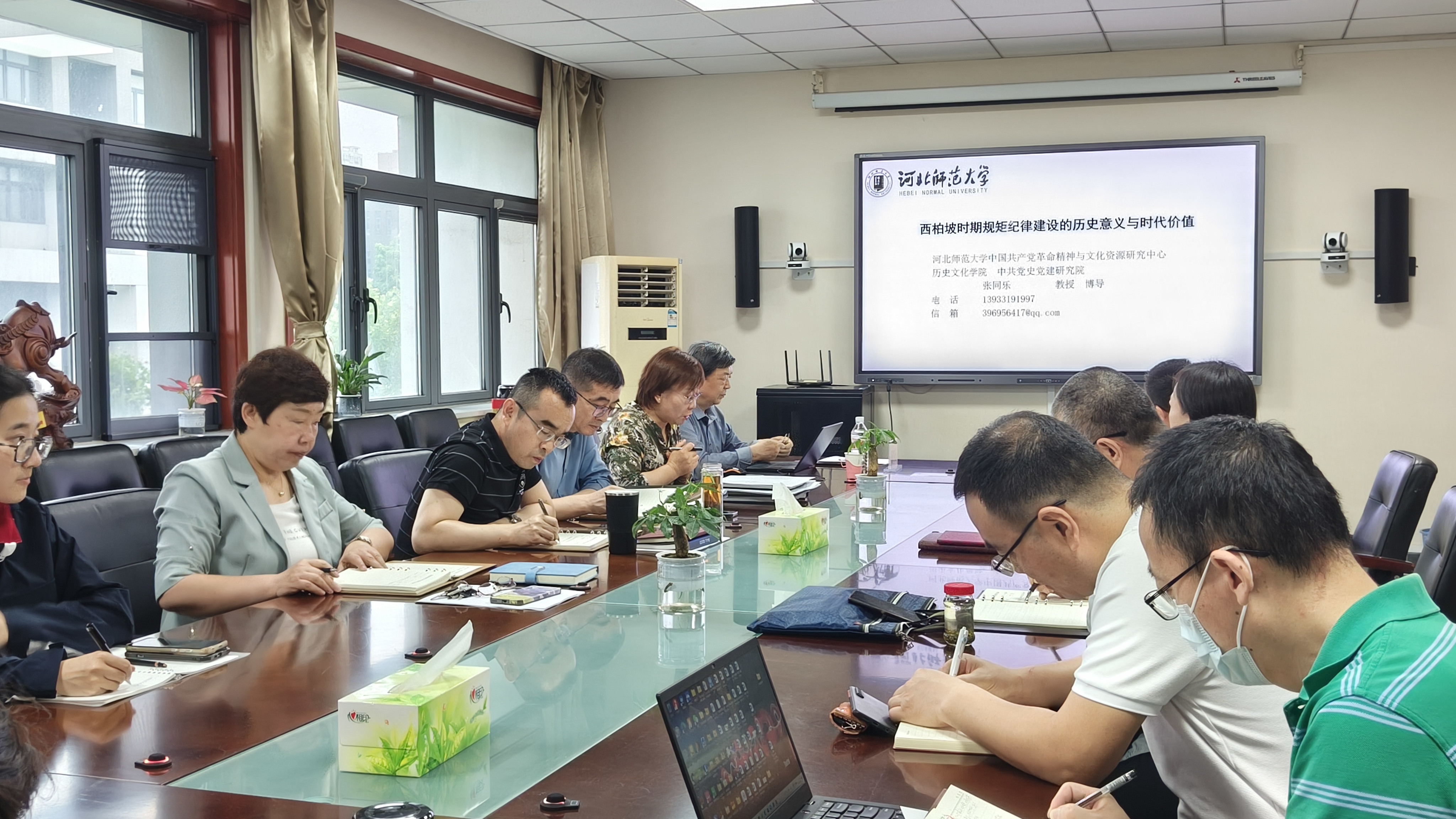 会上,张同乐教授从西柏坡时期规矩纪律建设的历史前提、西柏坡时期党的规矩纪律建设、西柏坡规矩纪律的历史意义与时代价值三个方面进行了讲授。张教授结合西柏坡时期的历史背景,以丰富详实的党史故事、鲜活生动的典型案例,着重对“建立报告制度”“健全政治宣传纪律”“三大纪律八项注意”“加强纪律性作为战略任务”“六项规定”“领导人率先垂范”等西柏坡时期党的规矩纪律建设有关内容进行了详细讲解。与会人员深刻感受到,西柏坡时期规矩纪律的建设有效保证了党的工作重心从农村到城市,是我们党从胜利走向胜利的可靠保证。